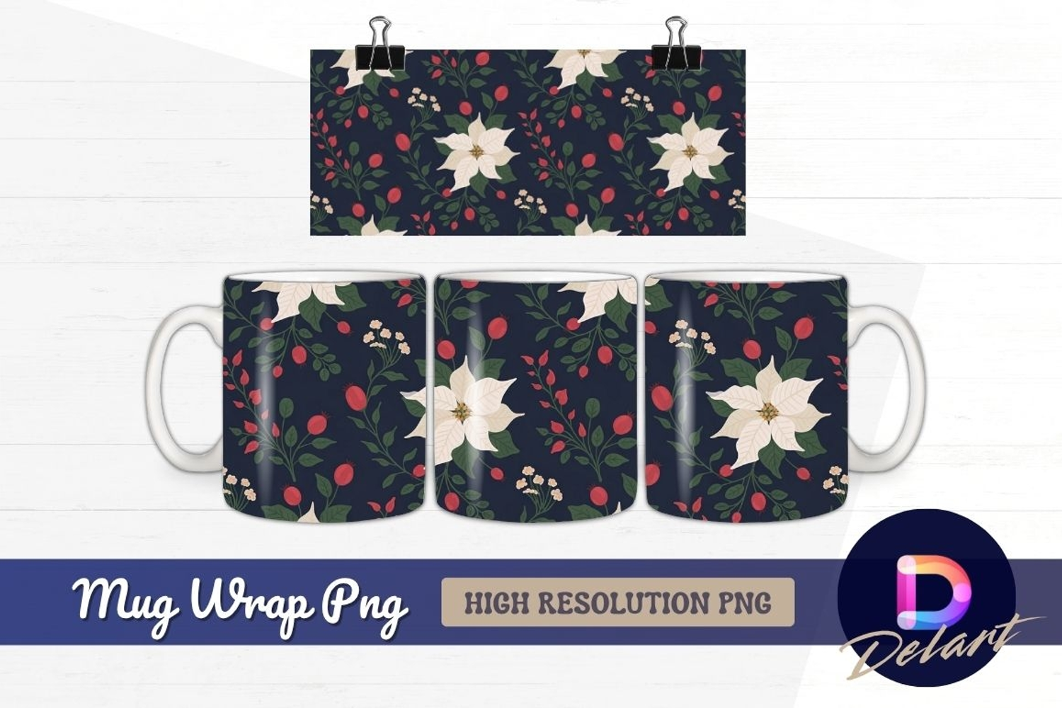 Christmas poinsettia floral seamless pattern mug design png example image 1