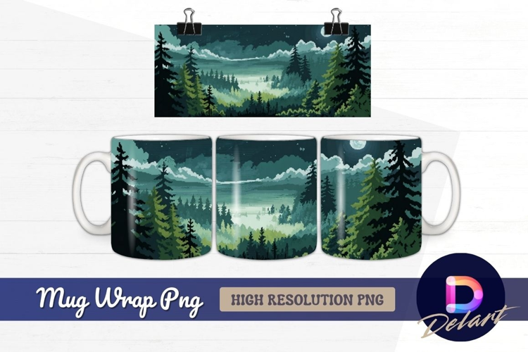 Pixel art night landscape with Mug Wrap PNG example image 1