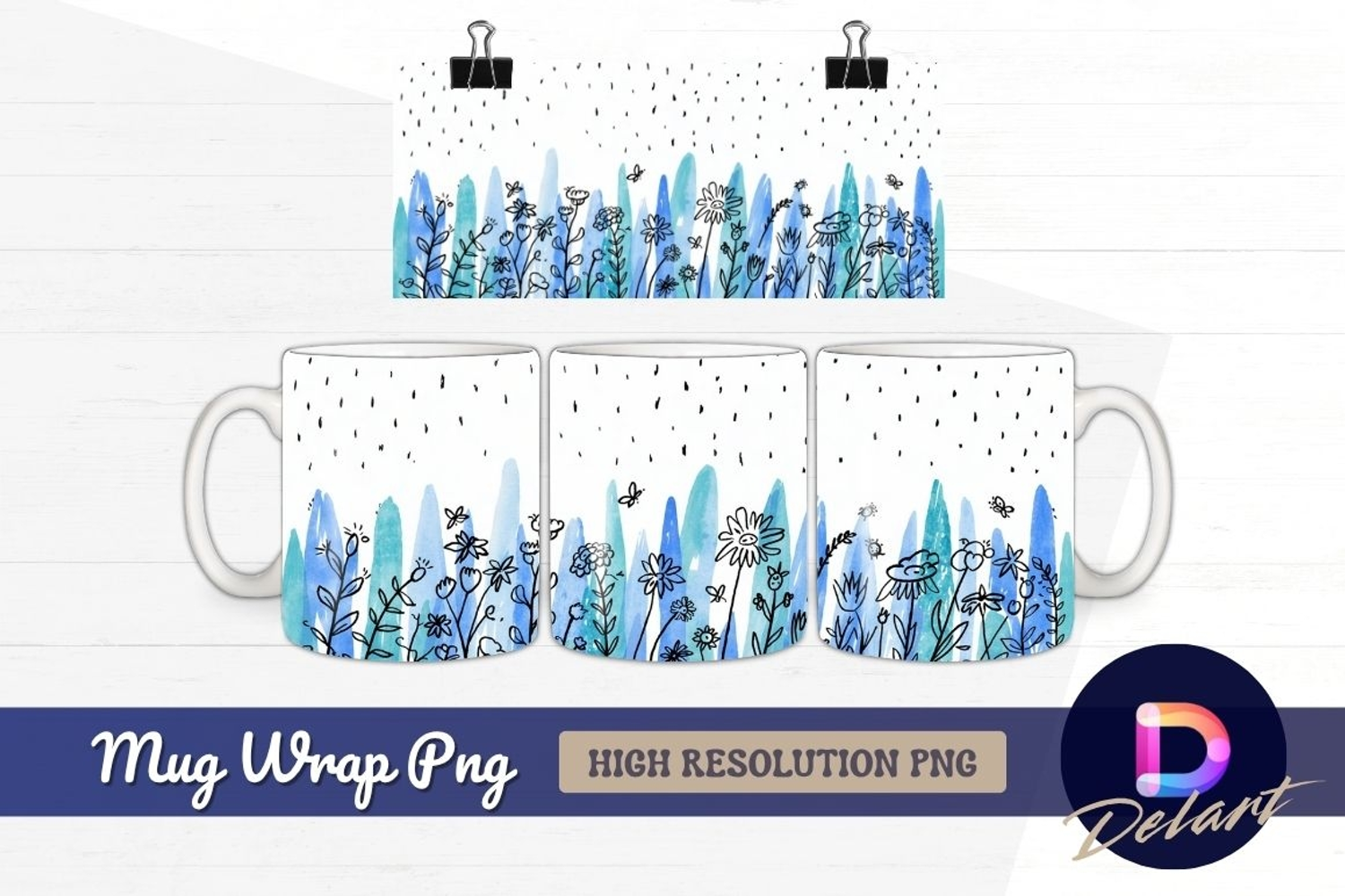 Hand drawn floral meadow in Mug Wrap PNG example image 1