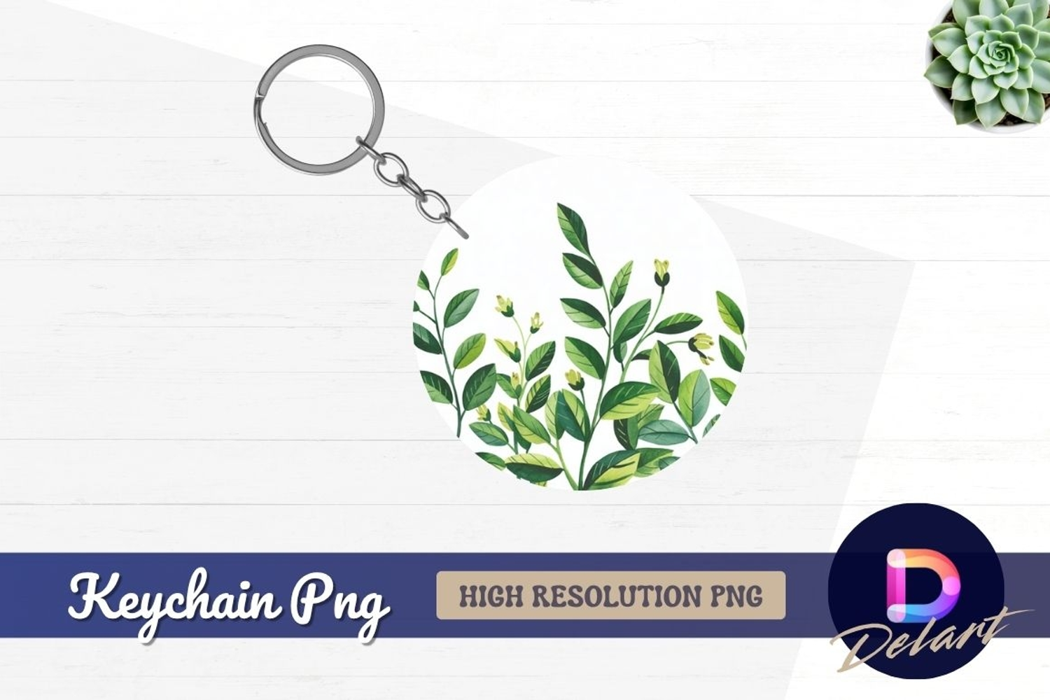 Watercolor Round Nature Green Floral Leaves Botanical Buds Plant Keychain