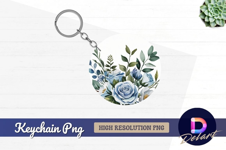 Blue roses floral circle round keychain png example image 1