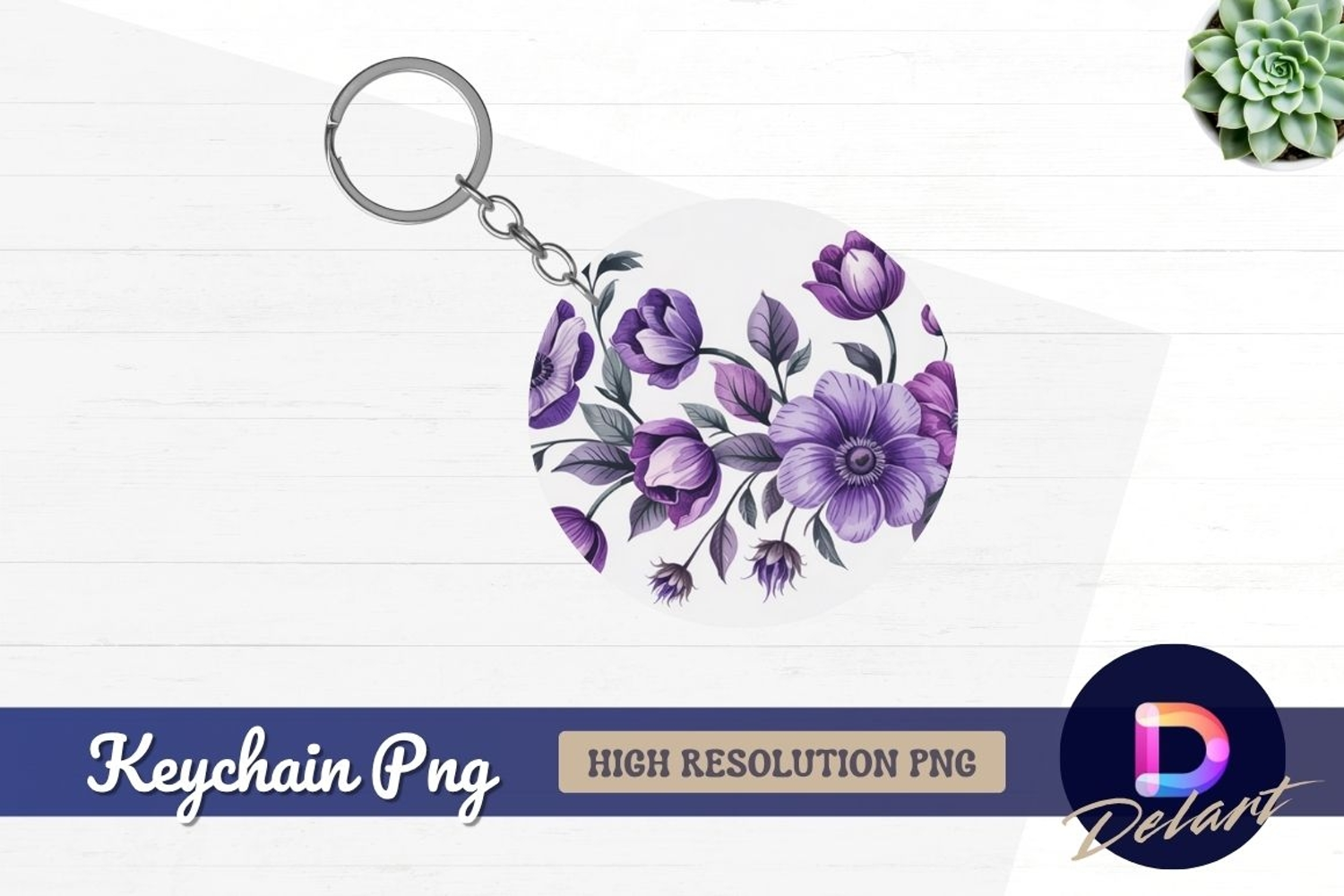 Watercolor Round Design Floral Flowers Purple Botanical Png Blossom Keychain