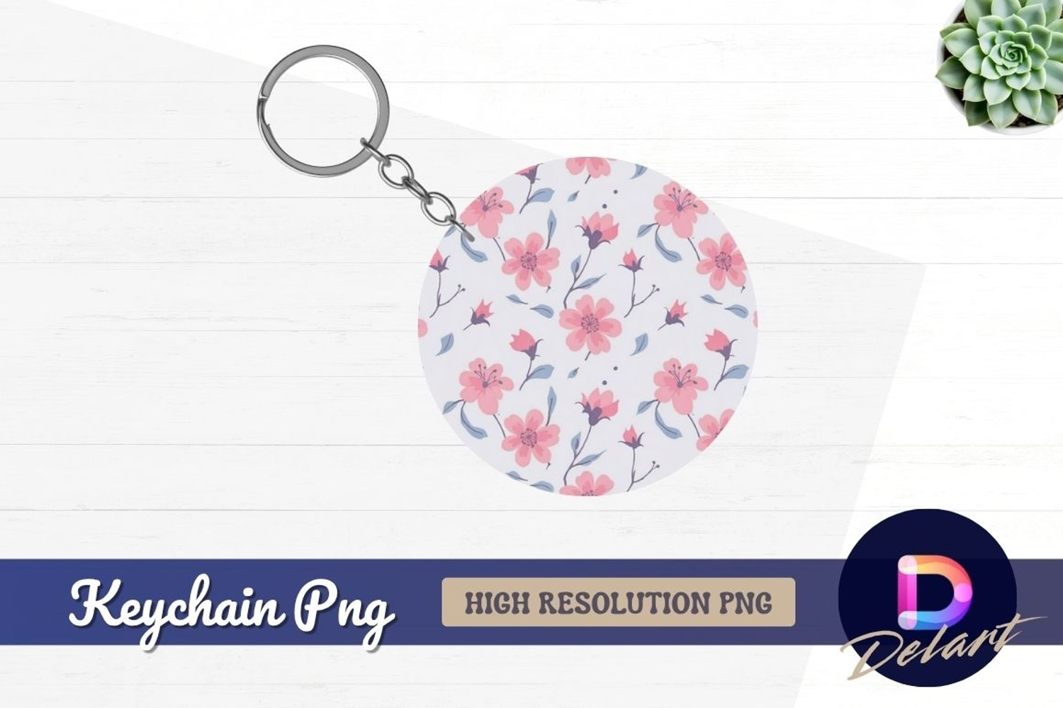 Round Design Pink Floral Flower Pattern Png Circle Springtime Keychain