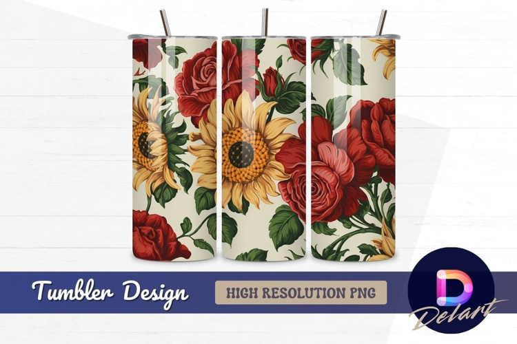 Red roses and sunflowers floral pattern tumbler wrap example image 1