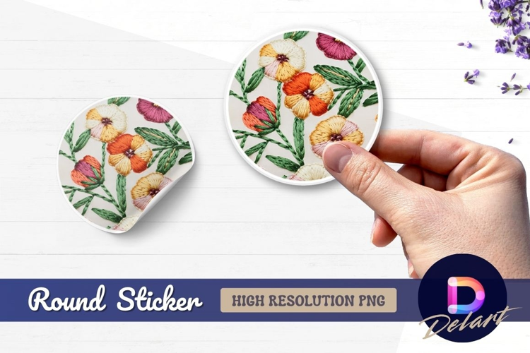 Round Sticker Design Floral Flower Pattern Fabric Png Textile Embroidery
