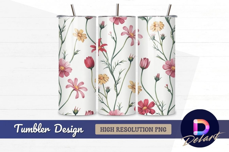 Floral cosmos seamless pattern tumbler wrap design example image 1