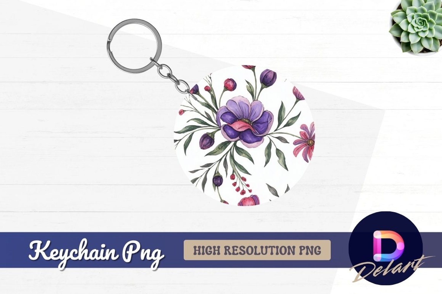 Similar Design Products to Purple floral watercolor pattern for round keychain png