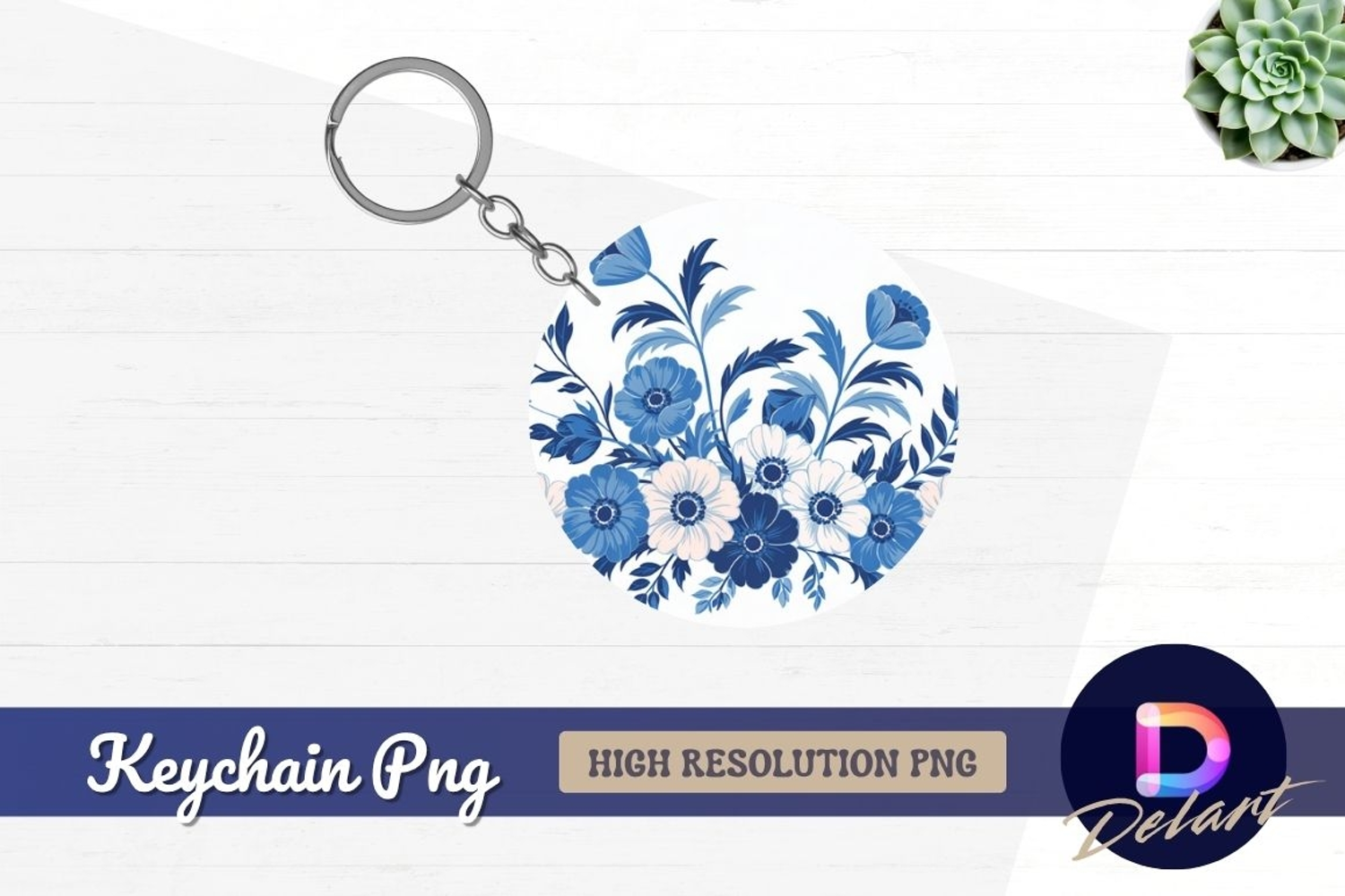 Similar Design Products to Blue and white floral Round Keychain PNG