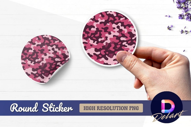 Pink camouflage pattern round sticker png example image 1