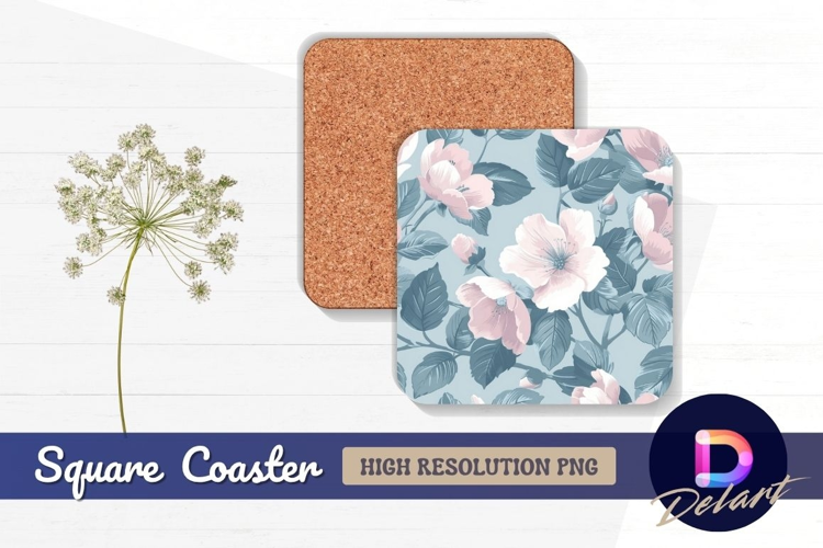 Floral pattern pink and blue Square Coaster PNG Design example image 1