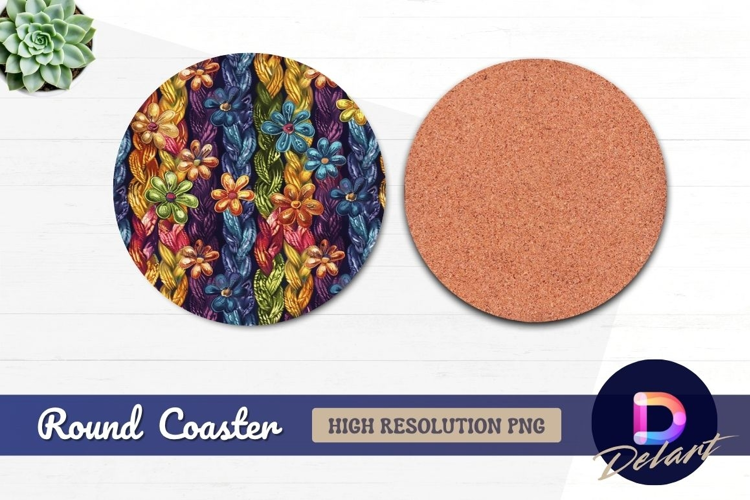 Similar Design Products to Colorful knitted flowers Round Coaster PNG Design