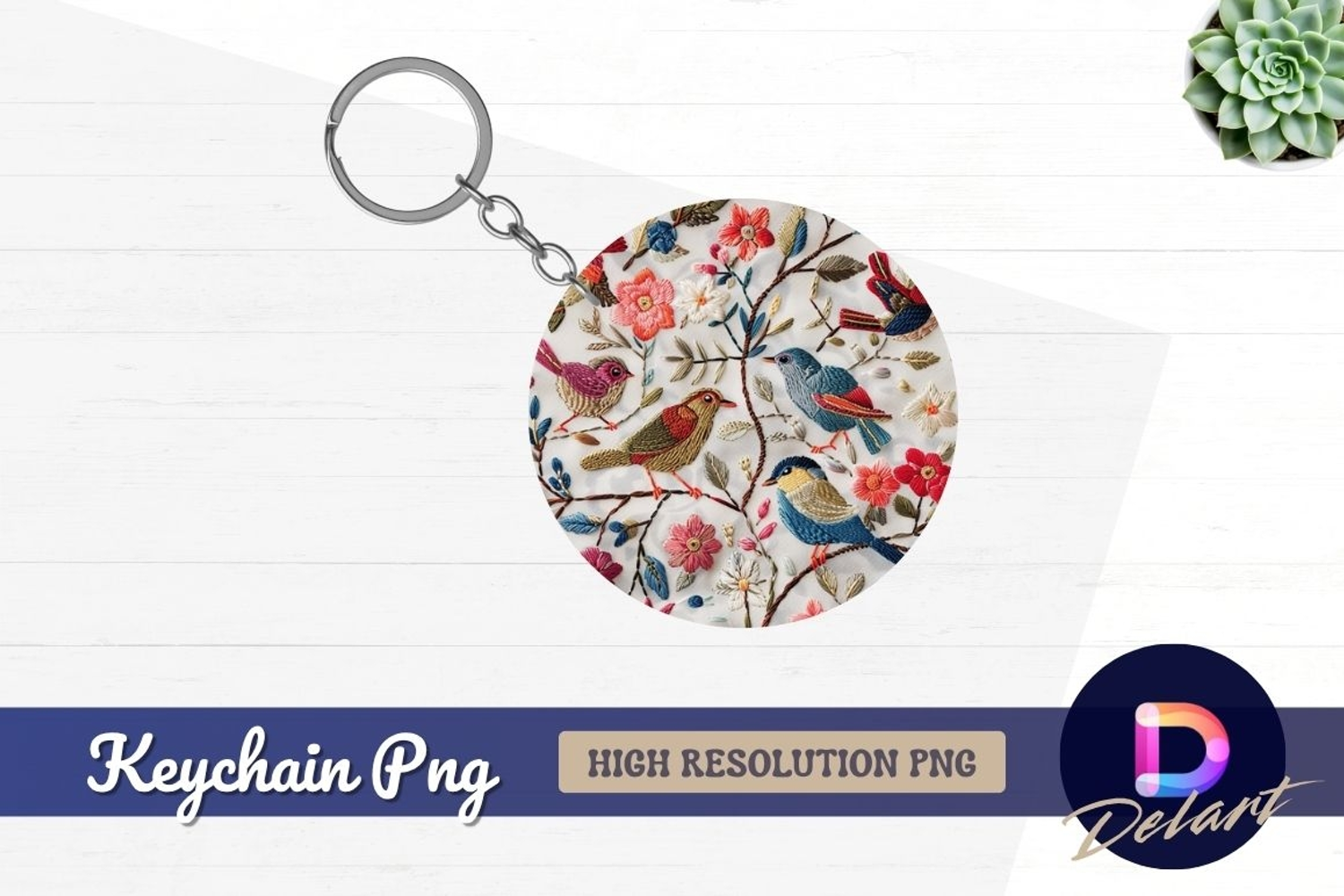 Similar Design Products to Embroidered birds and flowers on Round Keychain PNG