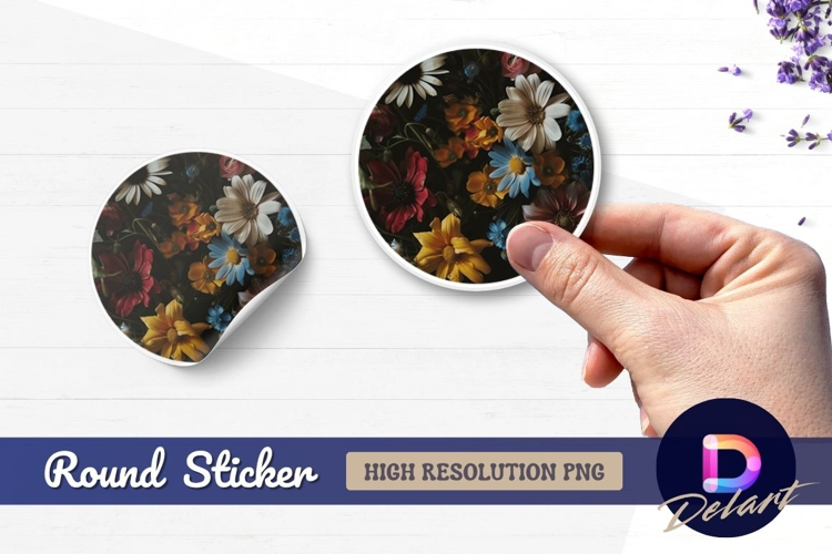Colorful floral arrangement on Round Sticker PNG example image 1