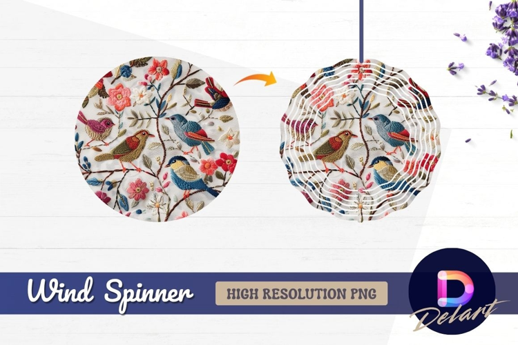 Embroidered birds and flowers Round Wind Spinner PNG example image 1