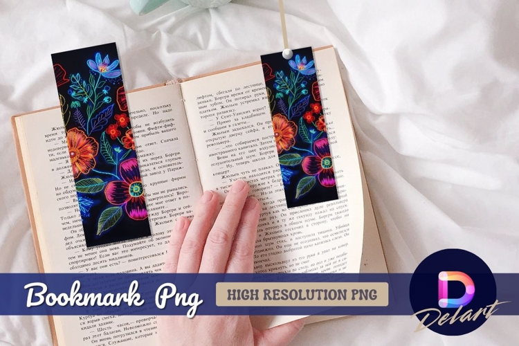 Neon embroidered flowers Bookmark PNG Design example image 1