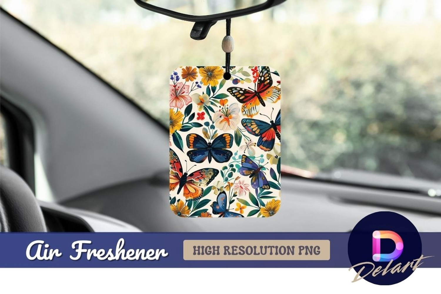 Vivid butterflies and flowers botanical Air Freshener PNG example image 1