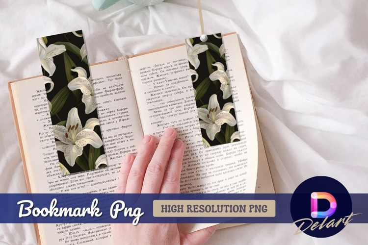 Elegant white lily floral dark Bookmark PNG Design example image 1