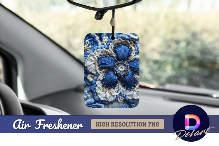 Blue embroidered flowers detailed Air Freshener PNG example image 1