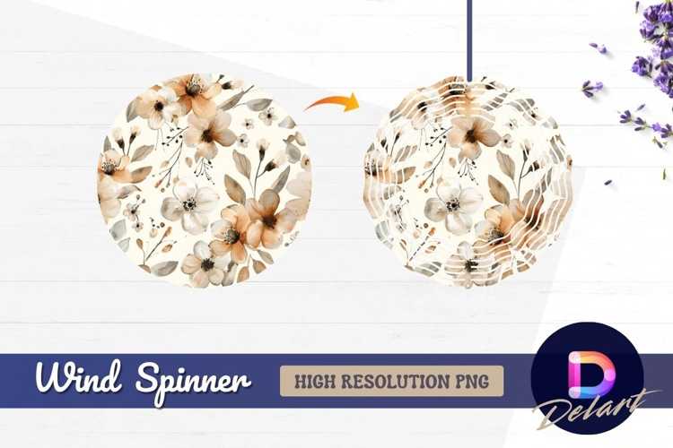 Watercolor floral pattern in neutral Round Wind Spinner PNG example image 1