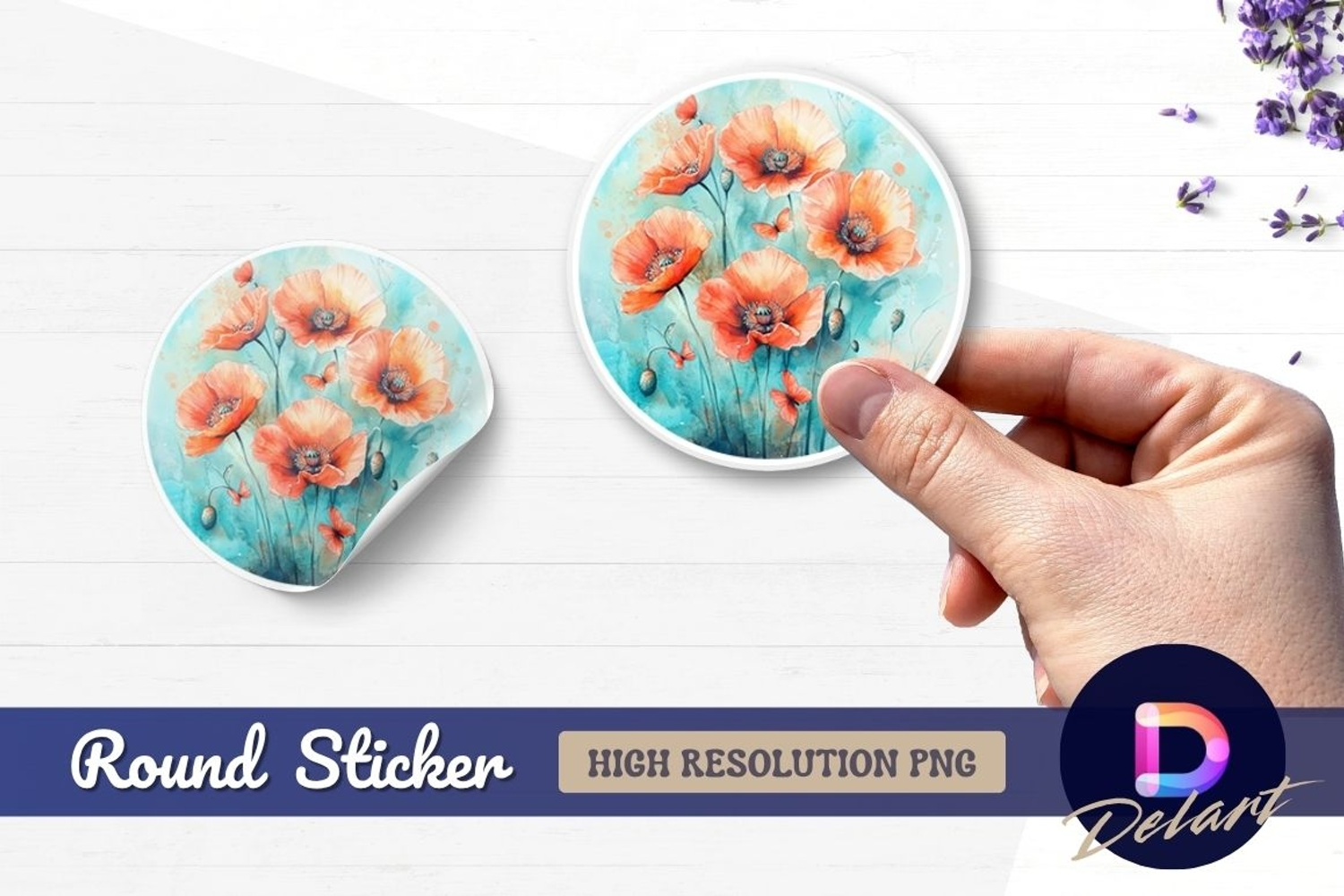 Watercolor poppies floral arrangement Round Sticker PNG example image 1