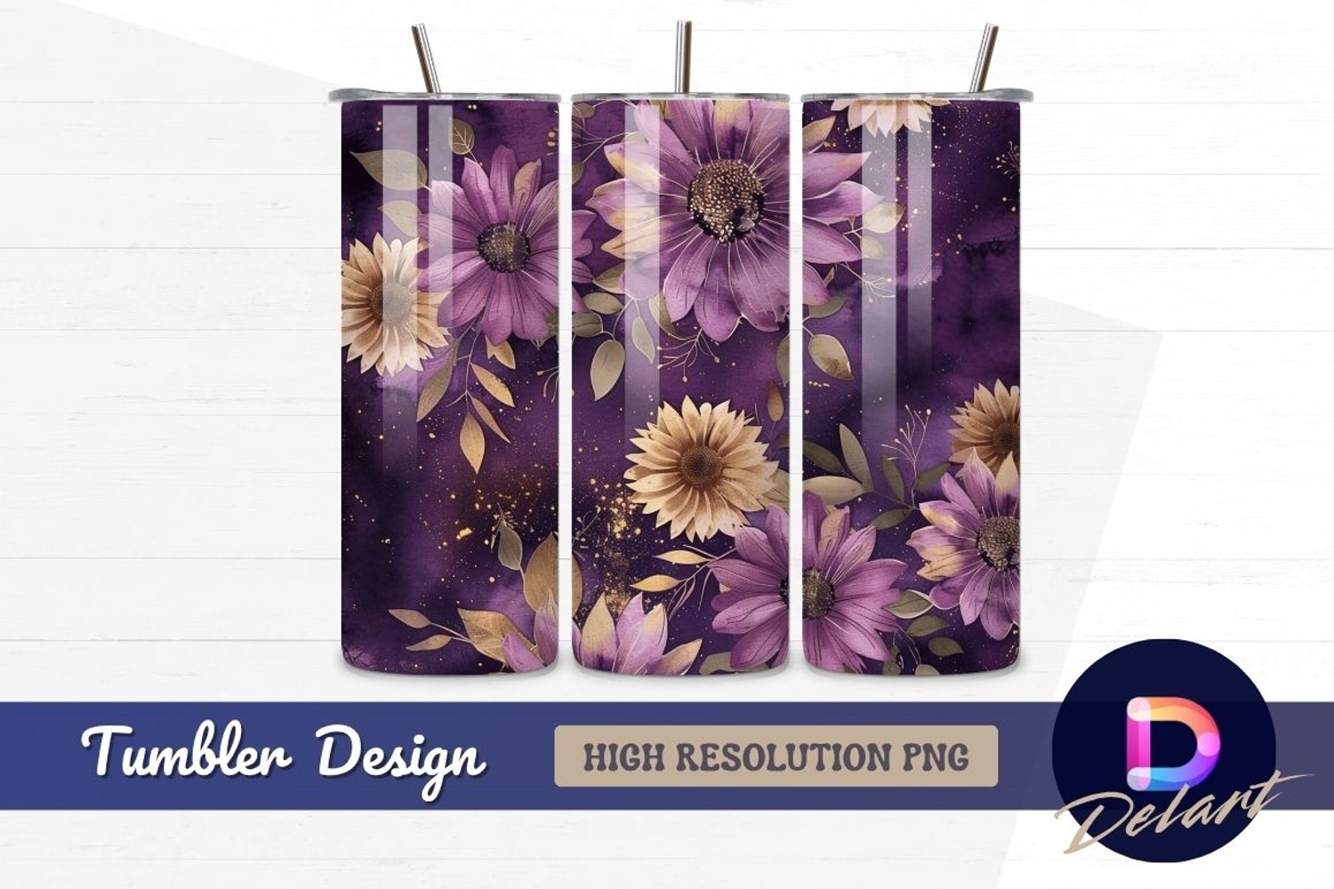 Purple floral watercolor Tumbler PNG Design example image 1