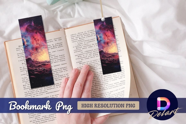 Cosmic landscape with nebulae and planets Bookmark PNG example image 1