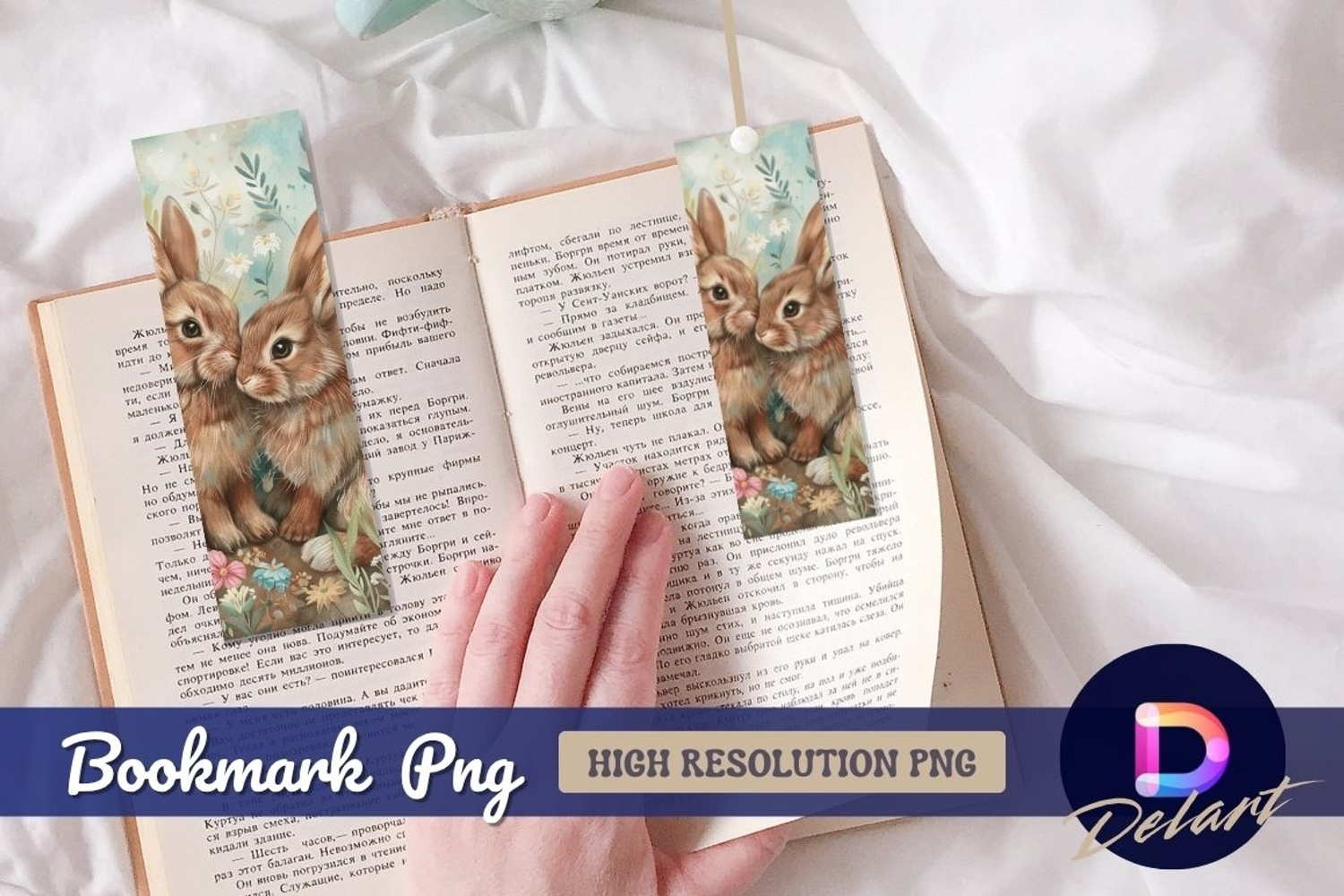 Watercolor rabbits surrounded by flowers Bookmark PNG example image 1