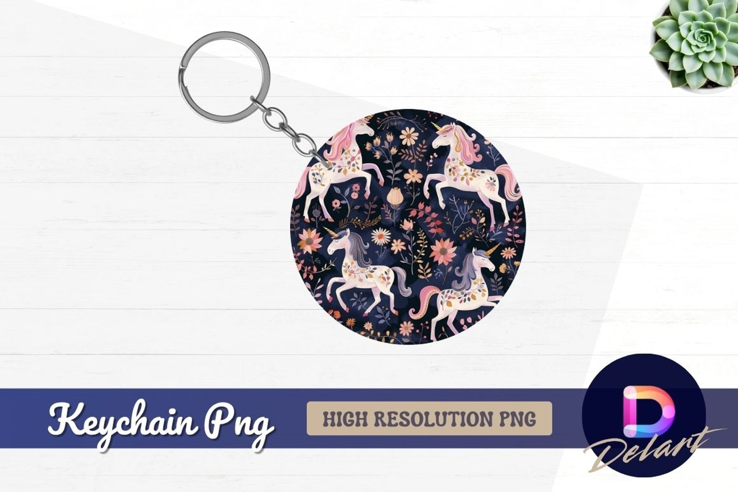 Floral unicorn pattern for Round Keychain PNG example image 1
