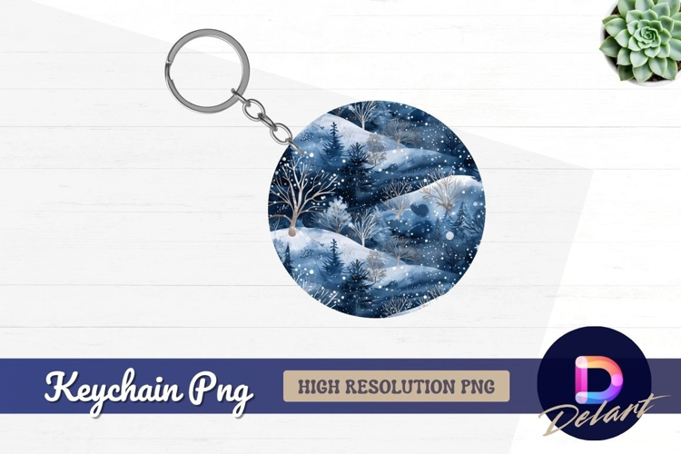 Similar Design Products to Watercolor snowy winter trees Round Keychain PNG