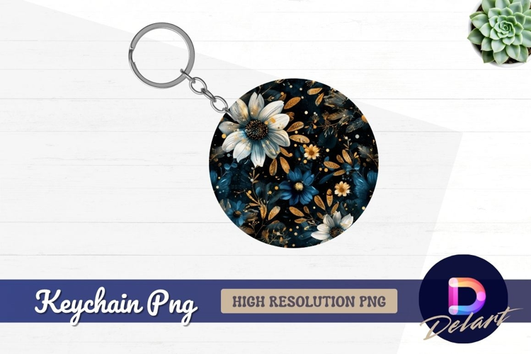 Floral Round Keychain PNG example image 1