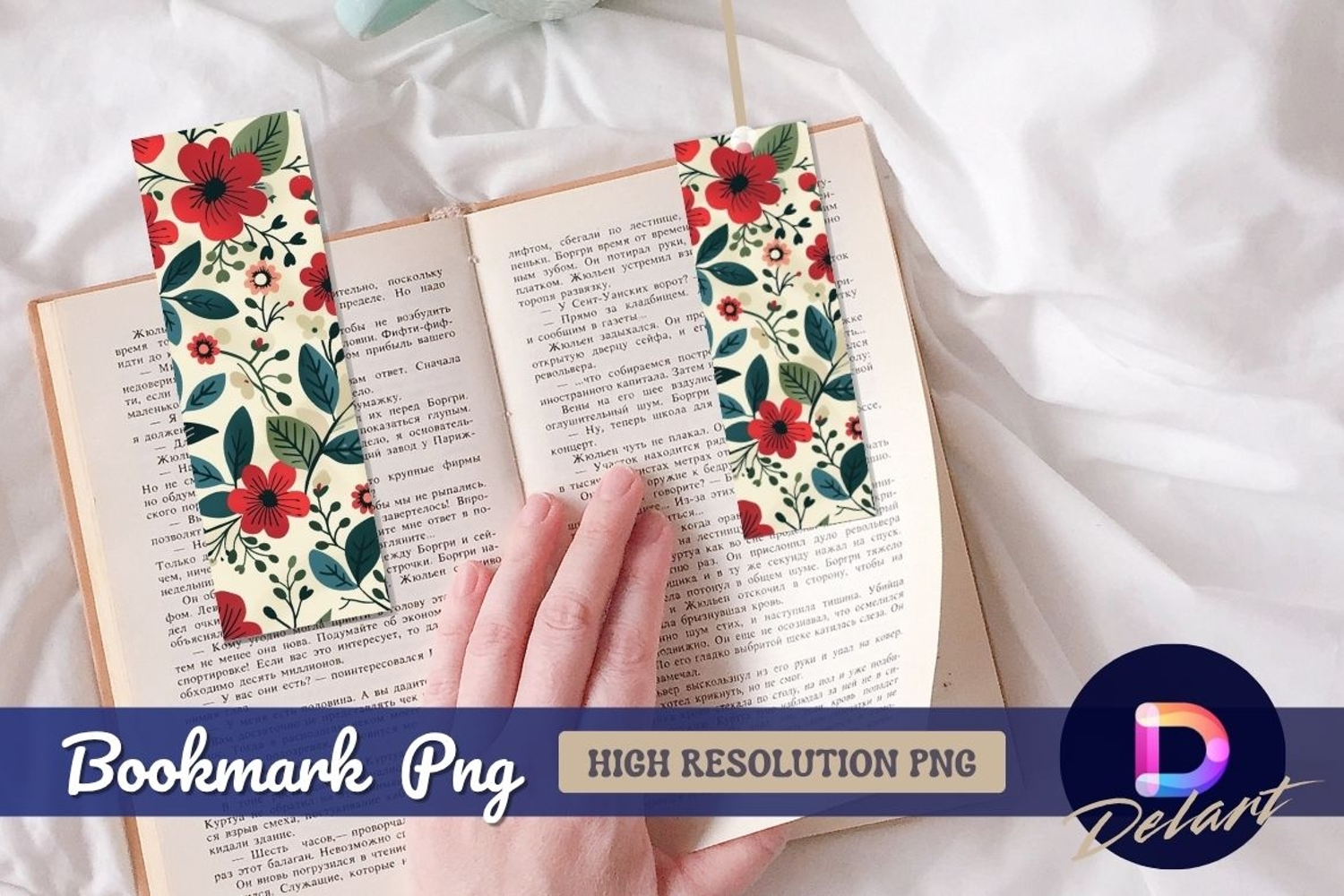 Floral illustration pattern red flowers and Bookmark PNG