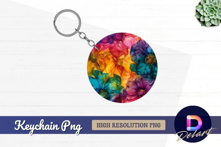 Watercolor Round Colorful Floral Flowers Abstract Vibrant Circle Keychain Alcohol Ink
