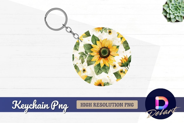 Watercolor sunflowers pattern for Round Keychain PNG example image 1
