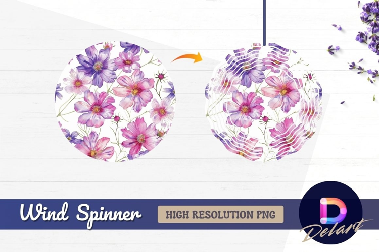 Watercolor cosmos floral pattern with Round Wind Spinner PNG example image 1