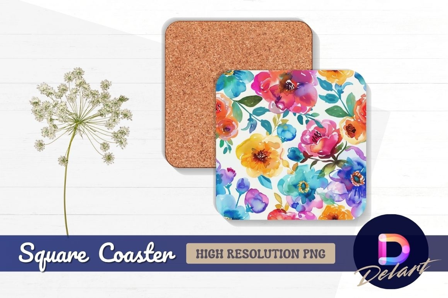 Watercolor floral pattern background for Square Coaster PNG