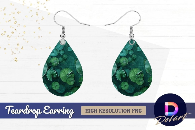 Lily pads in water with raindrops Teardrop Earring PNG example image 1