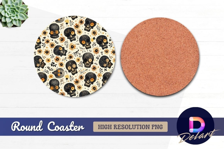 Similar Design Products to Halloween skulls and flowers pattern Round Coaster PNG