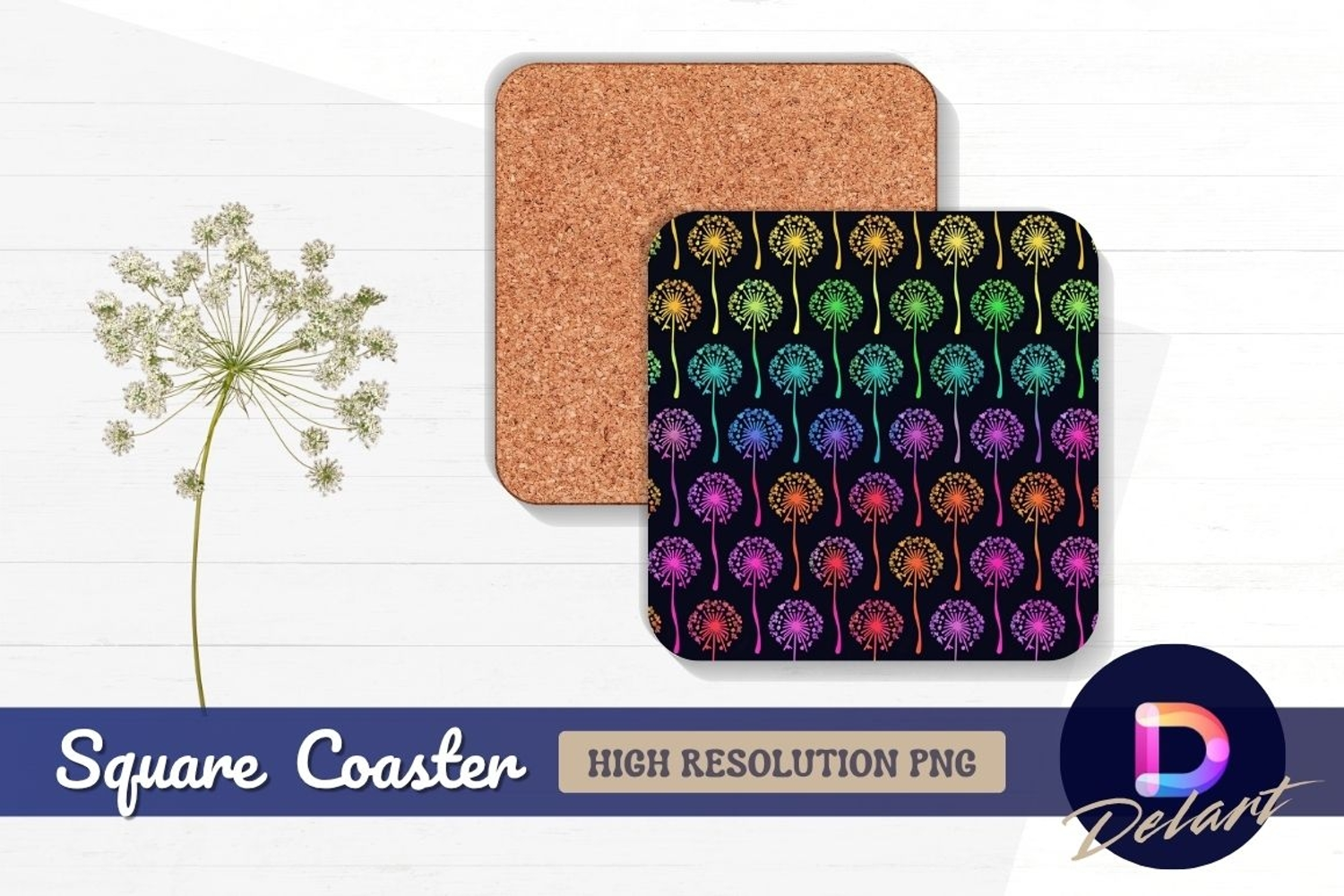 Colorful dandelion pattern background for Square Coaster PNG example image 1