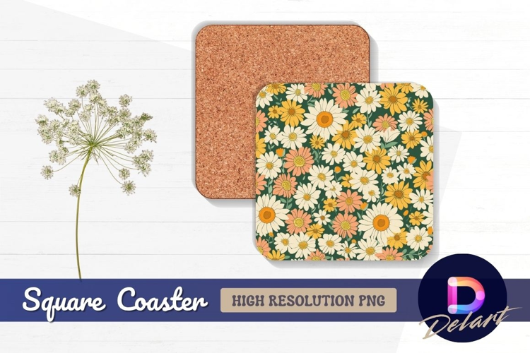 Retro floral pattern with daisies Square Coaster PNG example image 1
