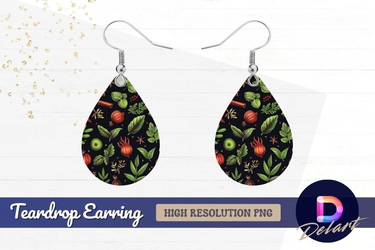 Spice and herb pattern on dark Teardrop Earring PNG example image 1