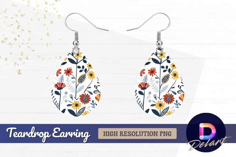 Hand drawn floral pattern with Teardrop Earring PNG example image 1
