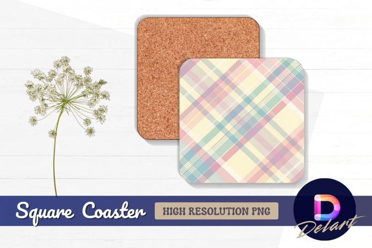 Pastel plaid pattern Square Coaster PNG example image 1