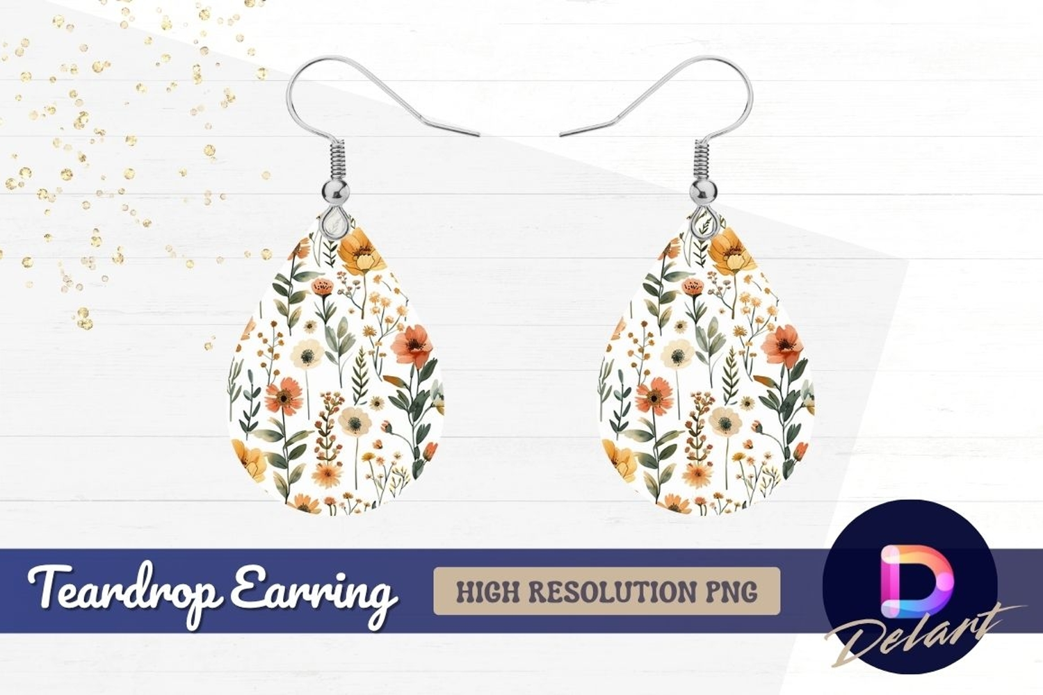 Watercolor floral pattern with orange Teardrop Earring PNG example image 1