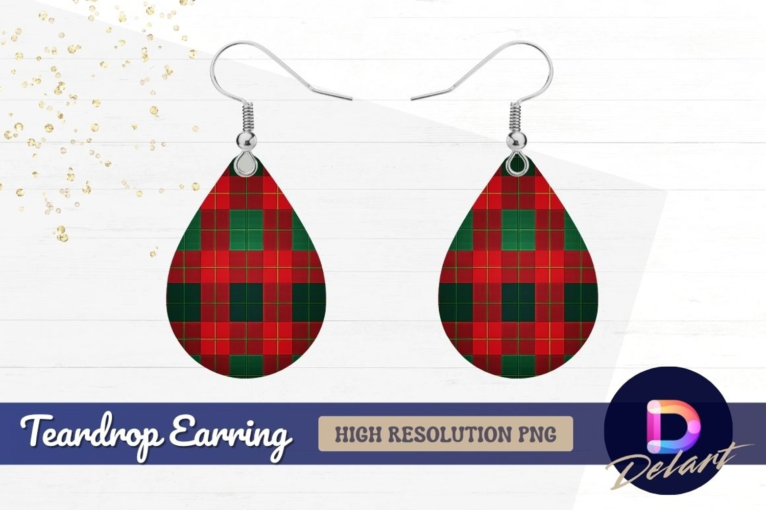 Red and green plaid pattern background Teardrop Earring PNG example image 1