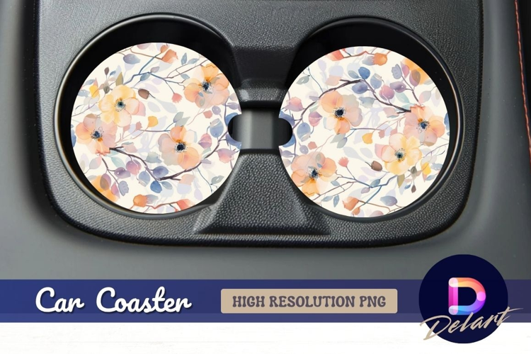 Watercolor floral pattern Round Car Coaster PNG example image 1