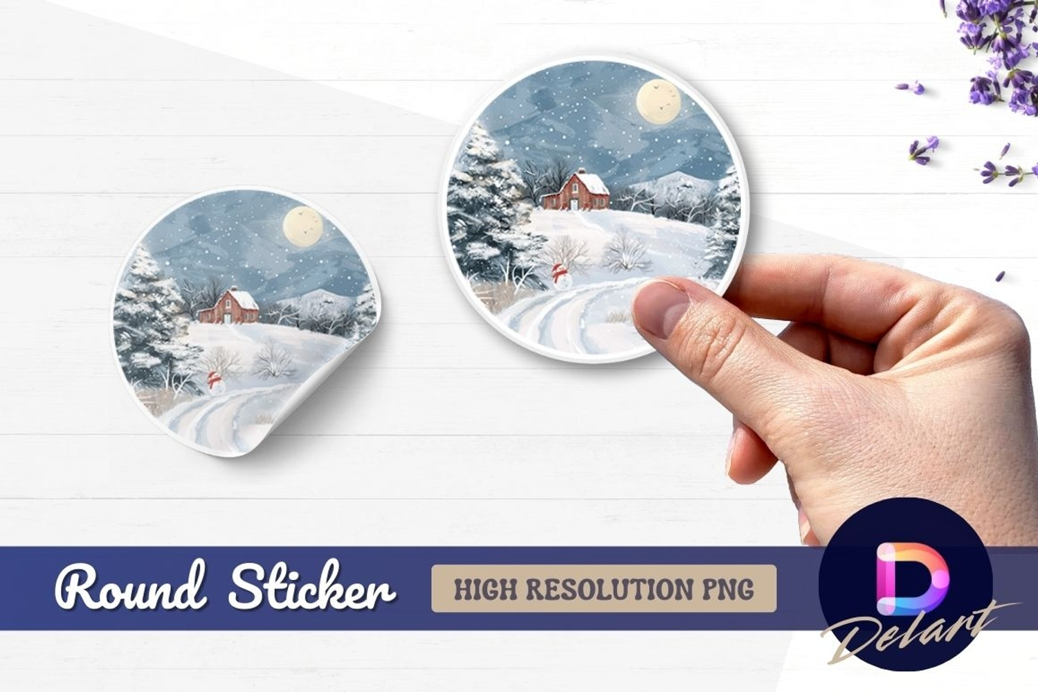 Similar Design Products to Winter landscape snowy house Round Sticker PNG