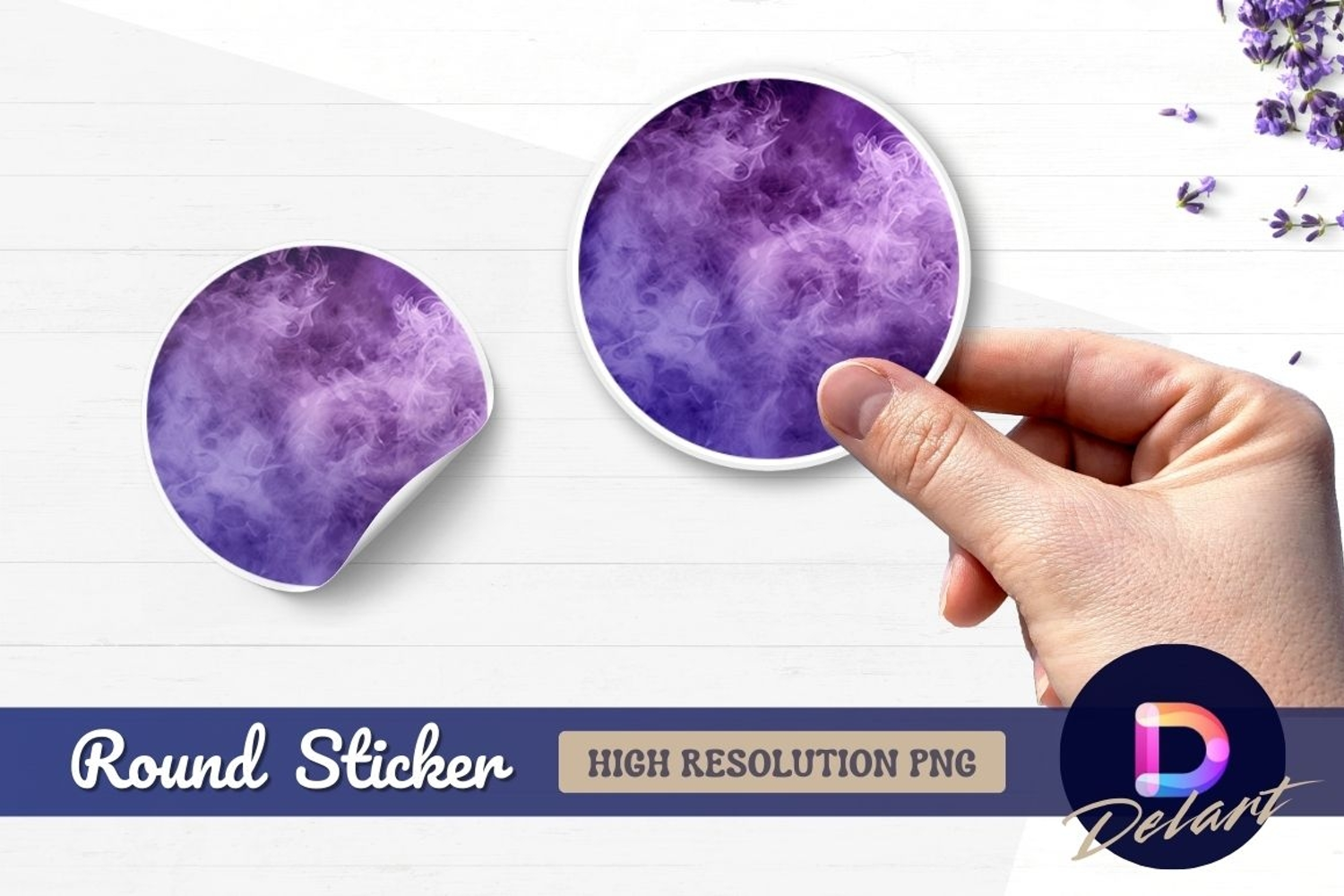Ink Round Sticker Water Abstract Purple Smoke Cloud Fog Vapor