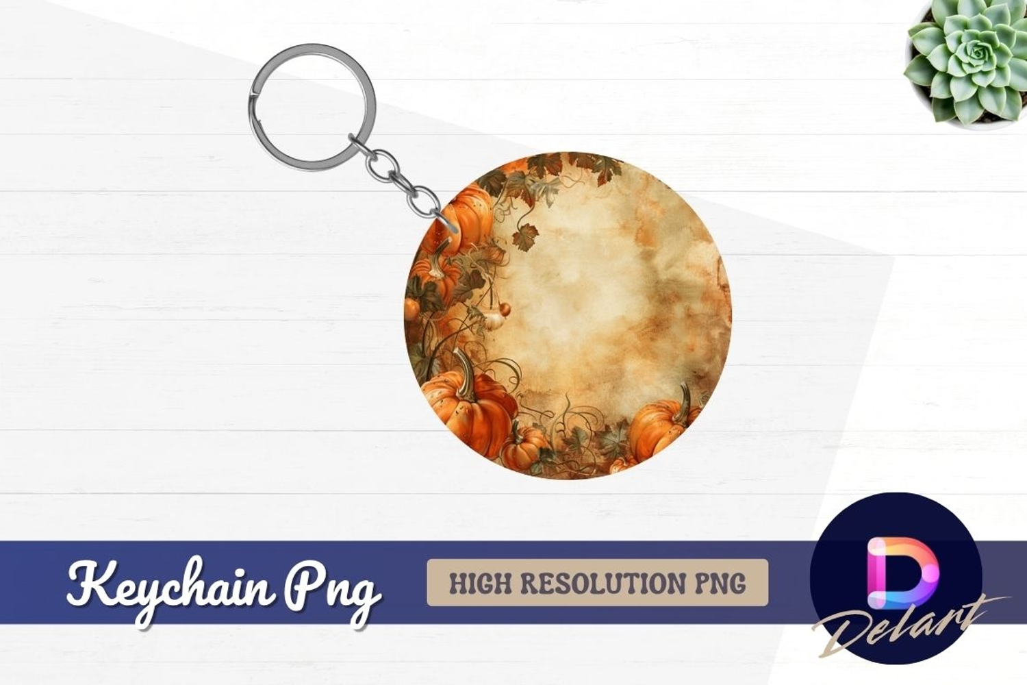 Autumn pumpkins vignette Round Keychain PNG example image 1