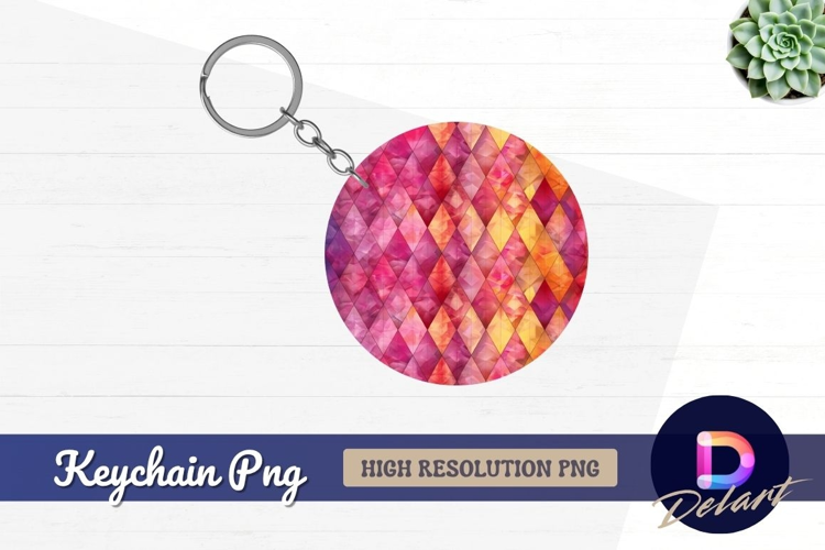 Watercolor Texture Pink Abstract Pattern Background Purple Orange Diamond Round Keychain Png