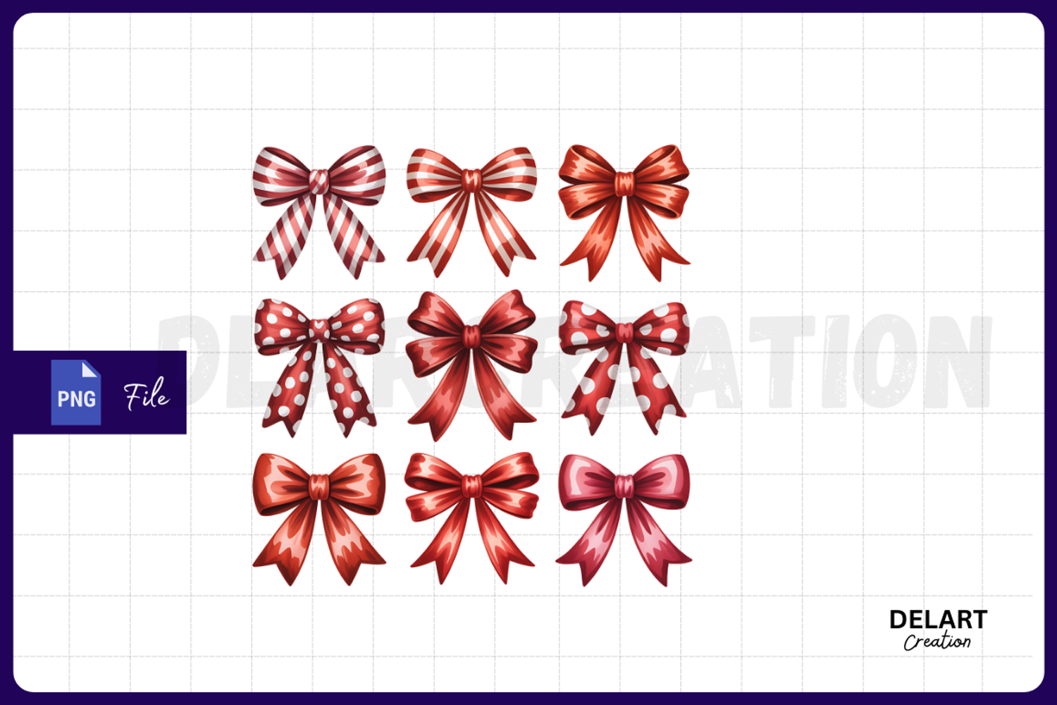 Red Christmas Bows Clipart Sublimation PNG Design example image 1